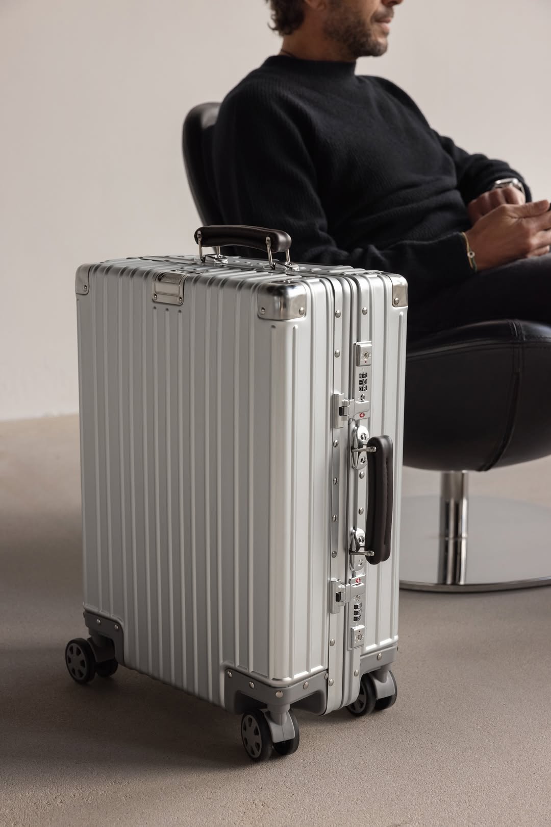 Der ICON Koffer wird aus hochwertiger, eloxierter Aluminiumlegierung gefertigt. Diese bietet außergewöhnliche Stoßfestigkeit und Langlebigkeit – ergänzt durch genietete Hochglanz-Ecken und luxuriöse Lederdetails. Ein Koffer für höchste Ansprüche – stilvoll, stabil und gebaut für viele Jahre intensiven Reisens.